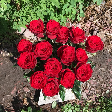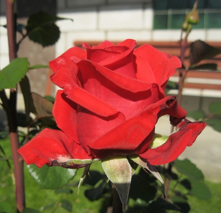 Роза Бутон темно-вишневый, с черными краями. Цветки бокаловидные, темно-красные, густо-махровые, 55 - 75 лепестков, с приятным сладким ароматом, в роспуске достигают 13 см. Чаще одиночные, редко до 3 штук в кистях. Кусты среднего размера (для юга - 100-130см). Побеги слабо-колючие. Листья темно-зеленые, матовые.