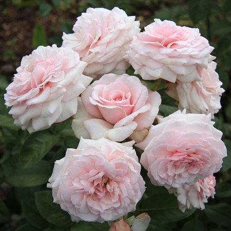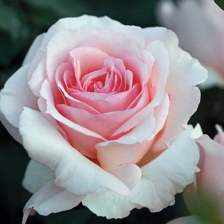 ​Крупные, светло розовые цветки с более яркими внешними лепестками и жумчужно-розовым центром, сильный аромат. Цветки главным образом одиночные на побегах, старинной формы. Куст вертикальный, с темно-зеленой листвой.