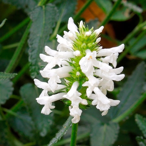 Многолетнее травянистое растение высотой 40-60 см с прямостоячими опушёнными стеблями. Цветки чисто-белые, мелкие (0,8-1 см), двугубые, собраны в плотные колосовидные соцветия длиной 10-15 см. Листья тёмно-зелёные, морщинистые, продолговато-яйцевидные с тупозубчатым краем, образуют прикорневую розетку. Цветёт с июня по август.