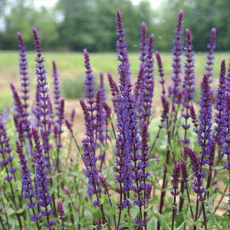 Изящный куртинный многолетник. Высота 60-70 см. Листья узкоовальные, темно-зеленые , слегка шероховатые. Соцветия представляют из себя узкие кисти темно-фиолетовых цветов. Цветет очень обильно и продолжительно. При своевременном удалении отцветших соцветий возможно повторное цветение. Время цветения: июль-август.