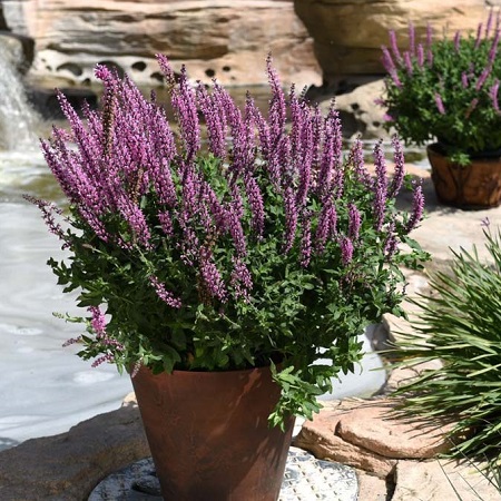 Неприхотливый многолетник высотой 25см (высота цветоносов35см) шириной 30см, образующий пышные, обильно и длительно цветущие куртины из многочисленных побегов. Растения зацветают в конце июня. Соцветия длинные, колосовидной формы обладают приятным ароматом, состоят из некрупных цветков насыщенного розового цвета, долго не теряющих декоративность. Время цветения июнь-июль, повторно сентябрь. Название латинское: Salvia nemorosa Salute Light Pink Особенности выращивания и ухода: Любая хорошо дренированная садовая земля. Обильное цветение возможно только при ярком солнечном освещении. Зимостойко. Использование: Очень широко используют при создании миксбордеров, клумб и рабаток, а также в цветниках природного стиля.