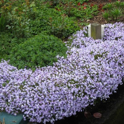 Вечнозелёное почвопокровное растение, высотой 5-10 см. со стелющимися густооблиственными побегами. Листья длиной до 2 см, узкие, жёсткие, заострённые. Цветки звёздчатые, светло-лавандово-голубые. Цветение начинается в мае, осенью возможно повторное.
