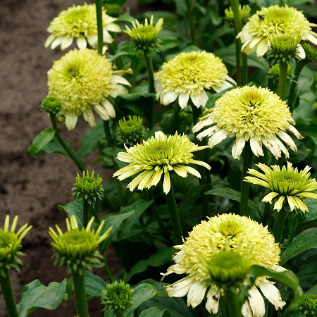 Сильная, длительно и обильно цветущая махровая эхинацея, с хорошо разветвленными, высокими побегами. Зеленовато-белые лепестки, лучиками окружают светло-зеленые махровые помпоны. Время цветения июнь - август.