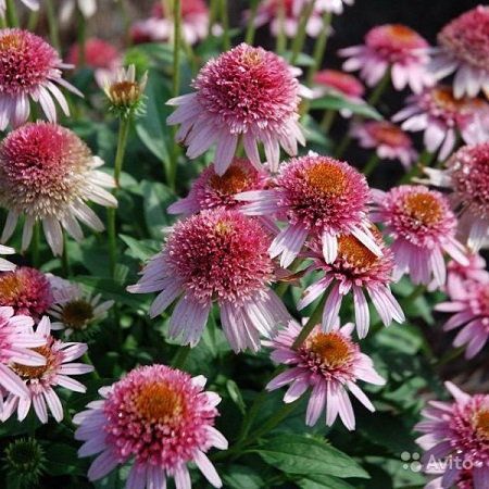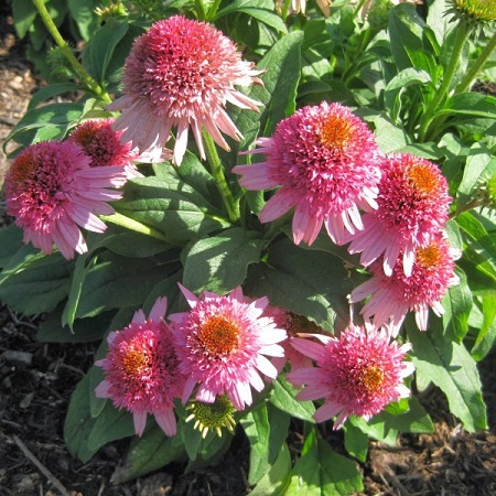 Карликовая эхинацея, высотой 30 см, шириной 40 см, компактная, с хорошо разветвленными прочными побегами, на которых в невероятном количестве на протяжении всего сезона появляются цветы. Цветы махровые цикламеново-розовые. Центр помпона сразу лимонно-зеленый, затем становится темно-розовым, а к концу цветения золотисто-желтым. Время цветения июнь - сентябрь.
