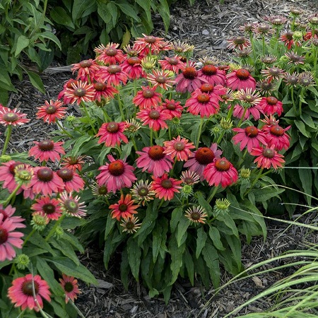 Компактный, обильно цветущий кустик, вертикально растущий, со множеством разветвлений. Цветки яркие, тёмно-розовые с коричневым центром. Стебли прочные, высотой до 50 см. Время цветения июнь - август. Сорт хамелеон