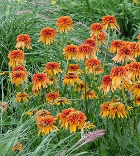 Название латинское: Echinacea purpurea "Marmalade" Особенности выращивания и ухода: Предпочитает солнечное местоположение, питательные, хорошо обработанные, суховатые почвы. Использование: Подходят для миксбордеров. Эффектны в группе среди газона. Используют для срезки. Идеальное контейнерное и бордюрное растение.