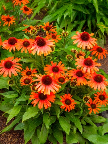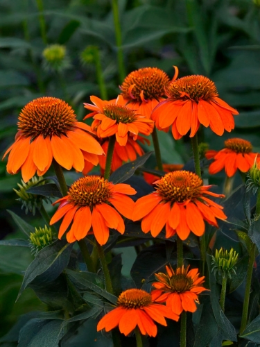 Эхинацея ‘Orange Skipper’ станет ярким акцентом вашего цветника: компактный куст с оранжево-коралловыми цветками эффектно смотрится на солнечных участках и в контейнерах, сохраняя декоративность всё лето.