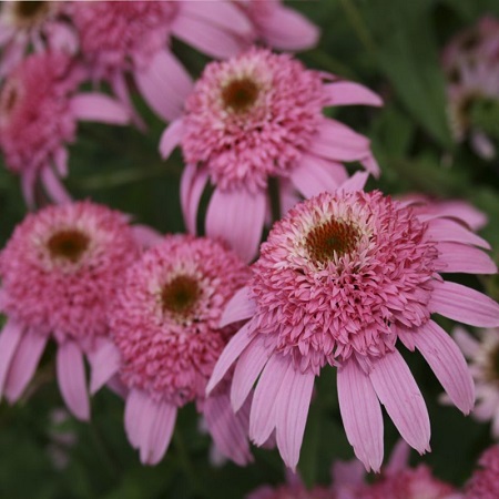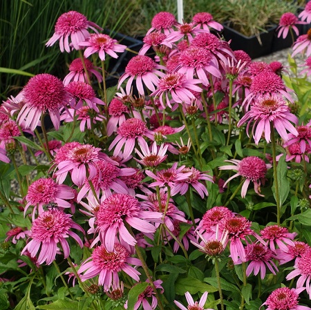 Многолетнее растение высотой 40-60 см и шириной до 50 см, цветки диаметром 8 см, махровые на толстых стеблях имеют привлекательный, малино-розовый цвет. Цветет июль-сентябрь.