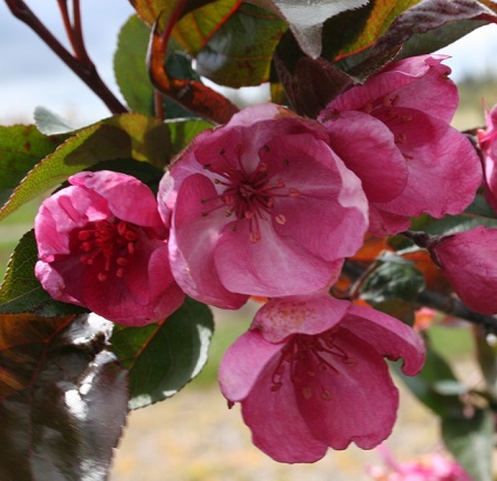 Небольшое деревце или крупный раскидистый кустарник с широкой густоветвистой кроной, высотой до 4м. Почки имеют пурпурный цвет, раскрываются розово-красными цветами, очень декоративные. Плоды мелкие, блестящие, ярко-красные, сохраняются до зимы
