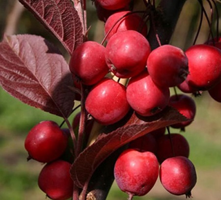 Листопадное дерево высотой до 4-6 м. Цветение приходиться на май и длиться 10-12 дней, цветы крупные, пурпурно-розовые, простые или махровые. Плоды темно-красные, слегка приплюснутые, до 3 см в диаметре, со слабым восковым налетом. Лист при распускании красный, постепенно зеленеющий. Опадает поздно осенью.