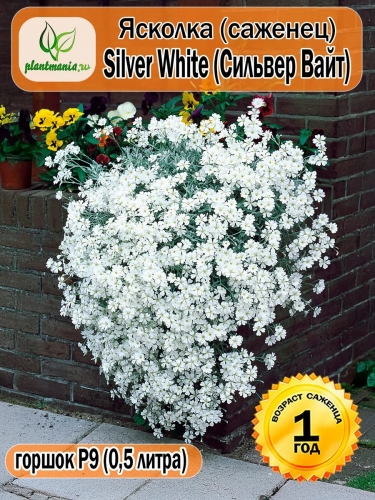 Ясколка 'Silver White' (Cerastium tomentosum 'Silver White') – популярный почвопокровный многолетник с серебристой листвой и обильным белоснежным цветением. Быстро разрастается, образуя эффектные ковры высотой 15–20 см и шириной 60–90 см. Побеги стелющиеся, легко укореняются, листья мелкие, ланцетные, густо опушённые, серебристо-белые за счёт войлочного опушения, декоративны весь сезон. Цветки белые с лёгким желтоватым центром, диаметром 1,5–2 см, собраны в рыхлые кисти. Цветение май–июнь (2–3 недели), иногда повторяется в конце лета.