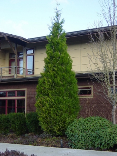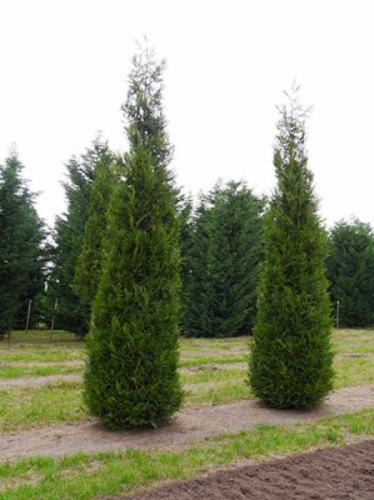 Вечнозелёное колонновидное дерево, с идущим до вершины стволом, и горизонтально-приподнятыми и дугообразно-вертикальными ветвями в нижней части ствола; очень быстрорастущая.Размер: 12 -15 м. высотой и 3 - 5 м. шириной. Годовой прирост в высоту 30 см., в ширину 10 см. Хвоя Блестящая тёмно-зелёная, грубая, чешуйчатая. Шишки продолговато-яйцевидные, 12 мм длиной, летом зелёные, зимой коричневые.